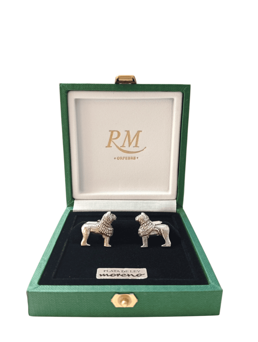Luce la historia en tus puños con estos exclusivos gemelos de plata de ley 925 que representan a los icónicos Leones de la Alhambra de Granada. Inspirados en la majestuosa Fuente de los Leones del Patio más célebre del palacio nazarí, cada gemelo captura con detalle la fuerza y elegancia de esta obra maestra del arte andalusí.